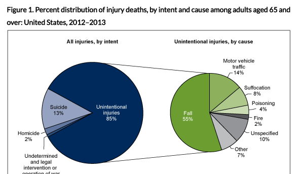 According to this article by Rob Geller on LinkedIn, falls are the leading cause of accidental deaths in seniors by far.