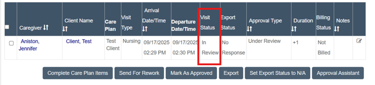 - Visit Approval Dashboard Visit Status "In Review" - This new status means Ankota is still processing the visit via our batch system. Once the batch is completed, you'll see status: needs approval or passed screening. This extra step ensures more accuracy | helpsite.com (universal).